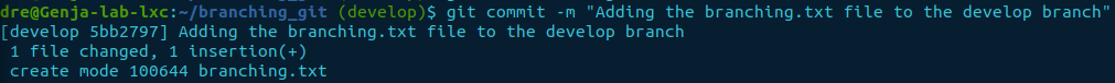 We’ll create a new file called branching.txt and commit it to the develop branch.